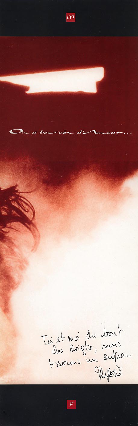 Elle permettra à Mylène de se changer pour chanter Tomber 7 fois. Mise en scène très rock et punchy. Alors que la salle est en délire, Mylène va continuer en interprétant Ainsi soit-je. Elle sera très émue à chaque prestation de cette chanson.