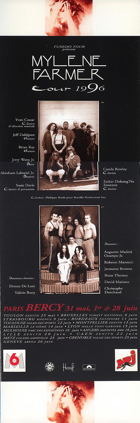 Le 14 décembre 1995, dans Studio Gabriel sur FR2, Mylène annonce qu’elle reviendra très bientôt sur scène. En effet, en cours d’année durant l’été, Mylène Farmer commençait à préparer ce futur tour 96 alors qu’elle était à Los Angeles : la surprise sera au rendez-vous !Une tournée avec un budget très restreint, et peu d’information de la part de l’artiste et de son staff. Le 24 octobre 1996, dans l’émission TIP TOP, Mylène annonce son retour sur scène après l’accident qui lui est arrivé le 15 juin à Lyon. Elle y chantera aussi La poupée qui fait non en duo avec Khaled. Duo repris pendant 2 dates de la tournée et qui finira en premier single extrait du Live. C’est donc une tournée de 30 dates effectuées en deux parties qui annoncera le grand retour scénique de l’artiste.