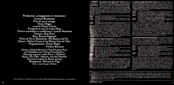 Éditions : Bertrand Le Page et Polygram Music sauf "Déshabillez-moi", éditions Intersong Paris